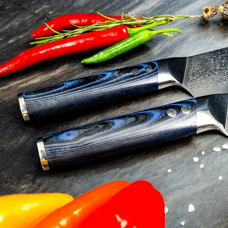 Der ergonomische G10 Griff wurde speziell entwickelt, um sowohl Rechts- als auch Linkshändern einen optimalen Halt zu bieten. Die ausbalancierte Gewichtsverteilung sorgt für ermüdungsfreies Schneiden und präzise Kontrolle, während Sie kulinarische Meisterwerke schaffen. Egal, ob Sie Gemüse fein schneiden, Fleisch zart zerlegen oder Kräuter präzise hacken möchten, dieses Messer-Set ist der ideale Partner.