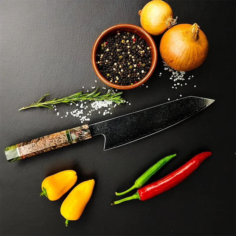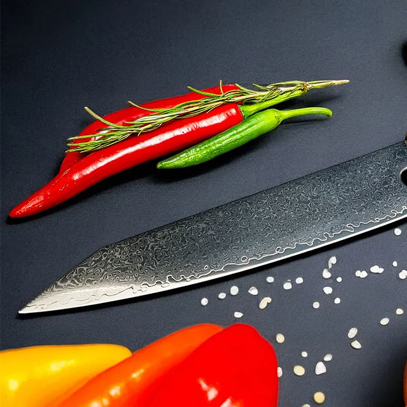 9. Ich bin Hobbyköchin und dieses Santokumesser hat mich absolut überzeugt. Es ist perfekt ausbalanciert, was das Schneiden sehr erleichtert. Die Klinge bleibt lange scharf und der Holzgriff fühlt sich angenehm an. Es ist jeden Cent wert und eine Bereicherung für meine Küche.